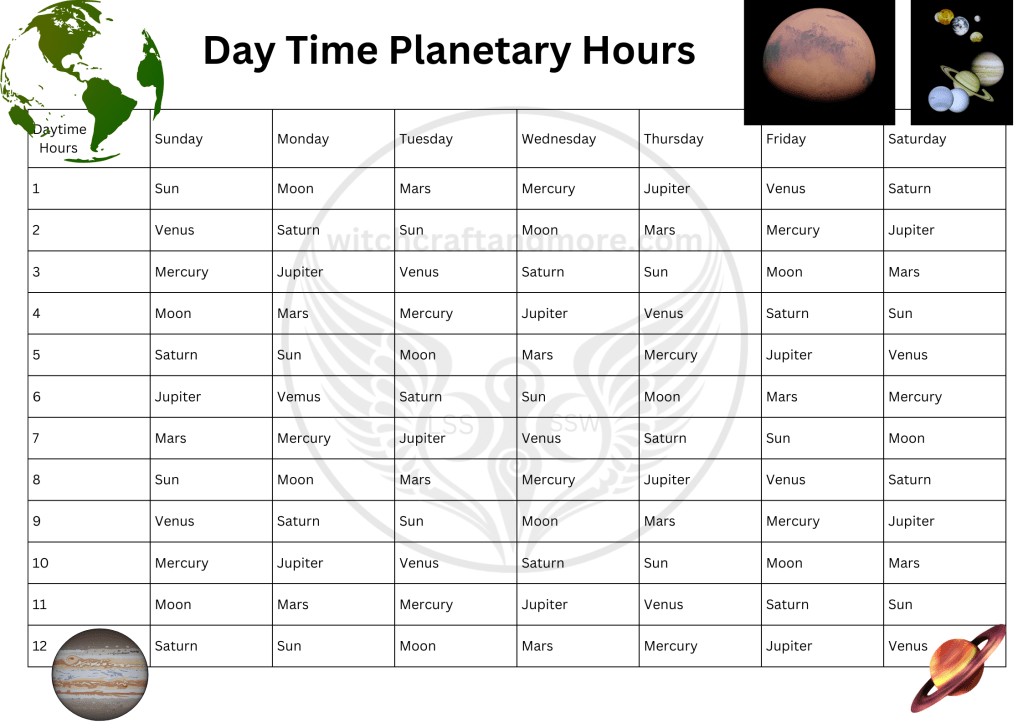 Day Time Planetary Hours Table Share this: Click to share on X (Opens in new window) X Click to share on Facebook (Opens in new window) Facebook Like Loading...